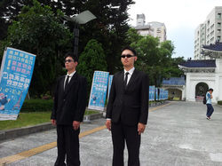 基本外觀:黑色西裝. 領帶. 通訊耳機. 墨鏡